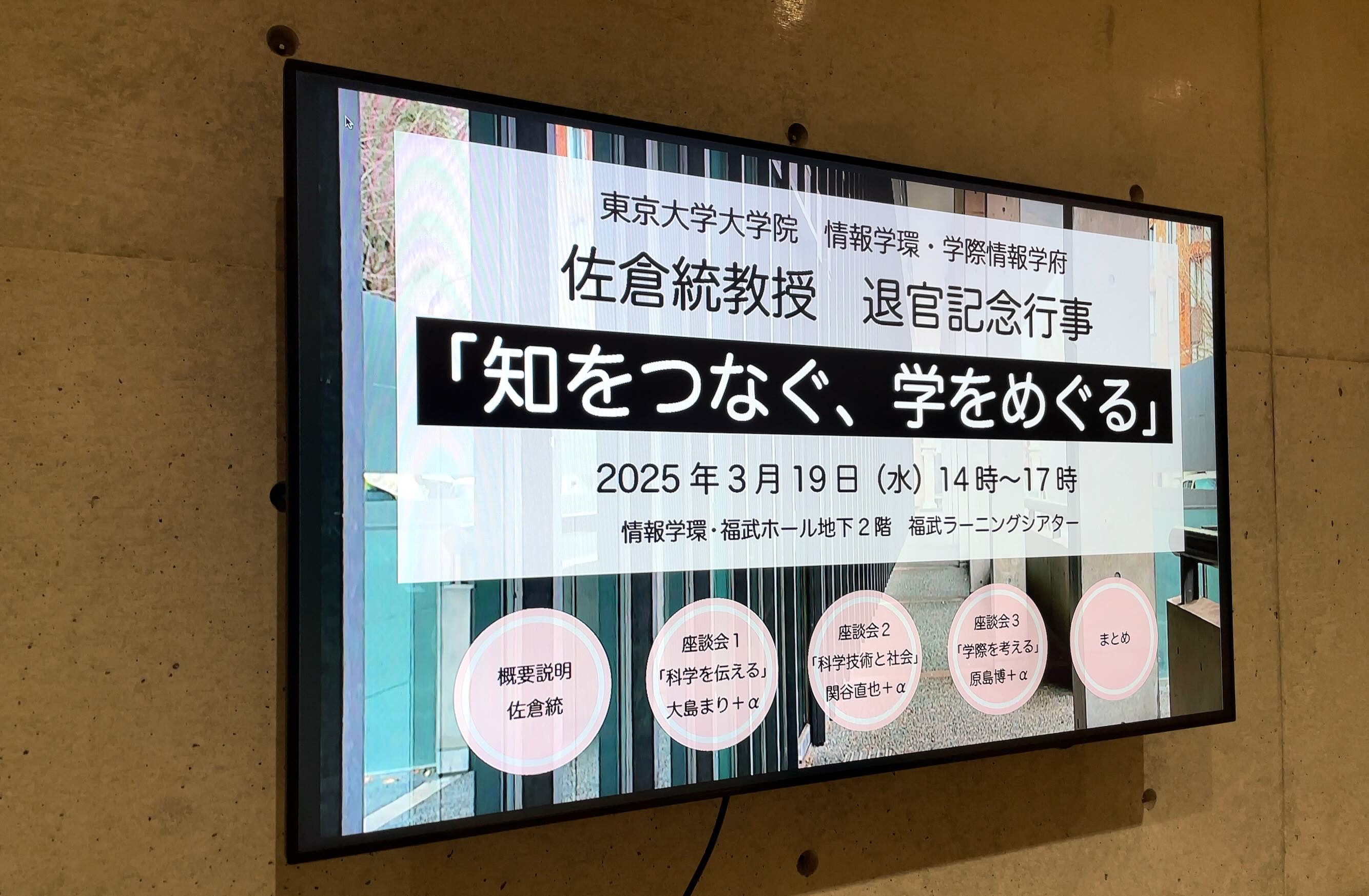 2025年3月19日(水)、佐倉統教授退官記念行事「知をつなぐ、学をめぐる」が情報学環・福武ホール地下2階福武ラーニングシアターにて開催されました。